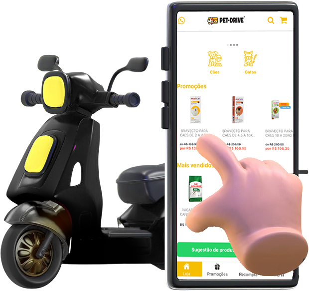 Aqui você encontra tudo o que seu pet precisa com carinho, atenção e a praticidade que você merece: sem sair do carro, pelo app ou até mesmo com entrega grátis em compras acima de R$ 100,00.